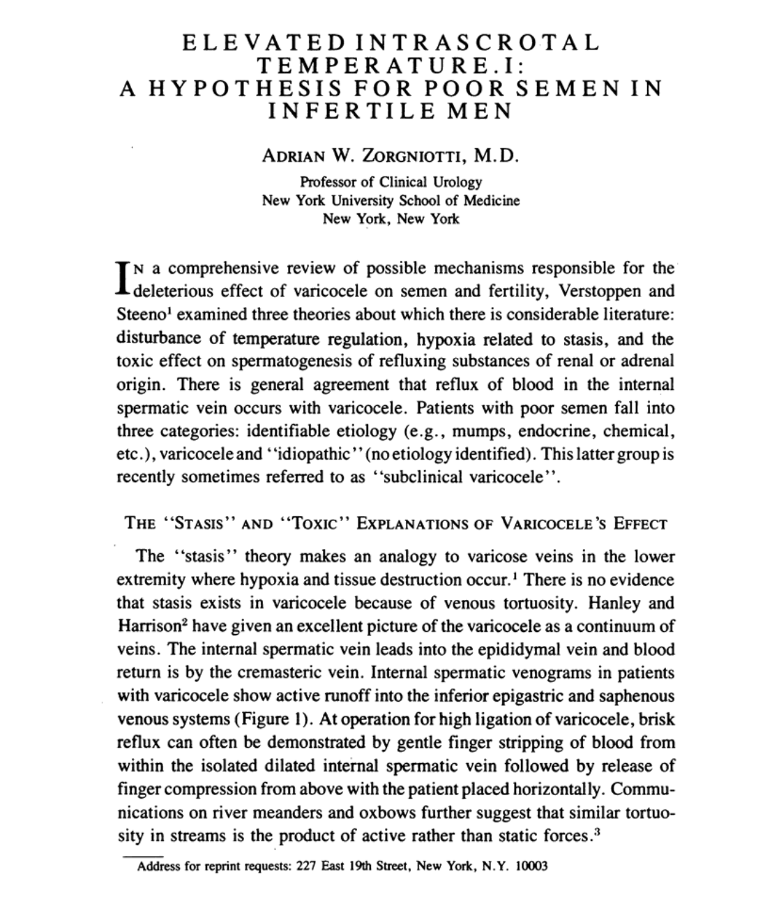 Elevated intrascrotal temperature. I: A hypothesis for poor semen in infertile men. by A W Zorgniotti